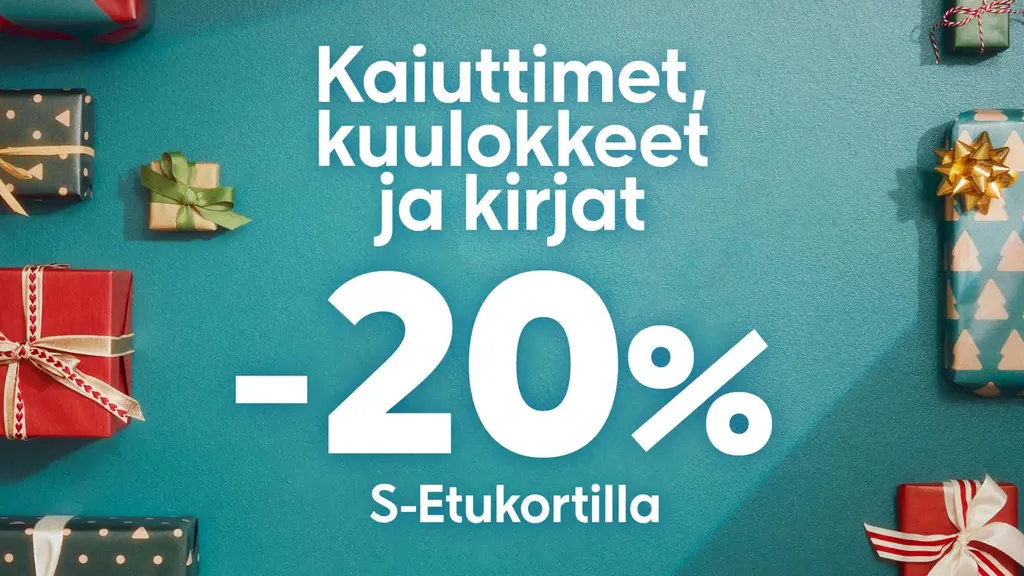 Lahjavinkki pukinkonttiin: Kaiuttimet, kuulokkeet ja kirjat -20 % S-Etukortilla Turun Osuuskaupan Prismoissa ke-su 17.-21.12. Ei voimassa verkkokaupassa. Ei voi yhdistää muihin etuihin.