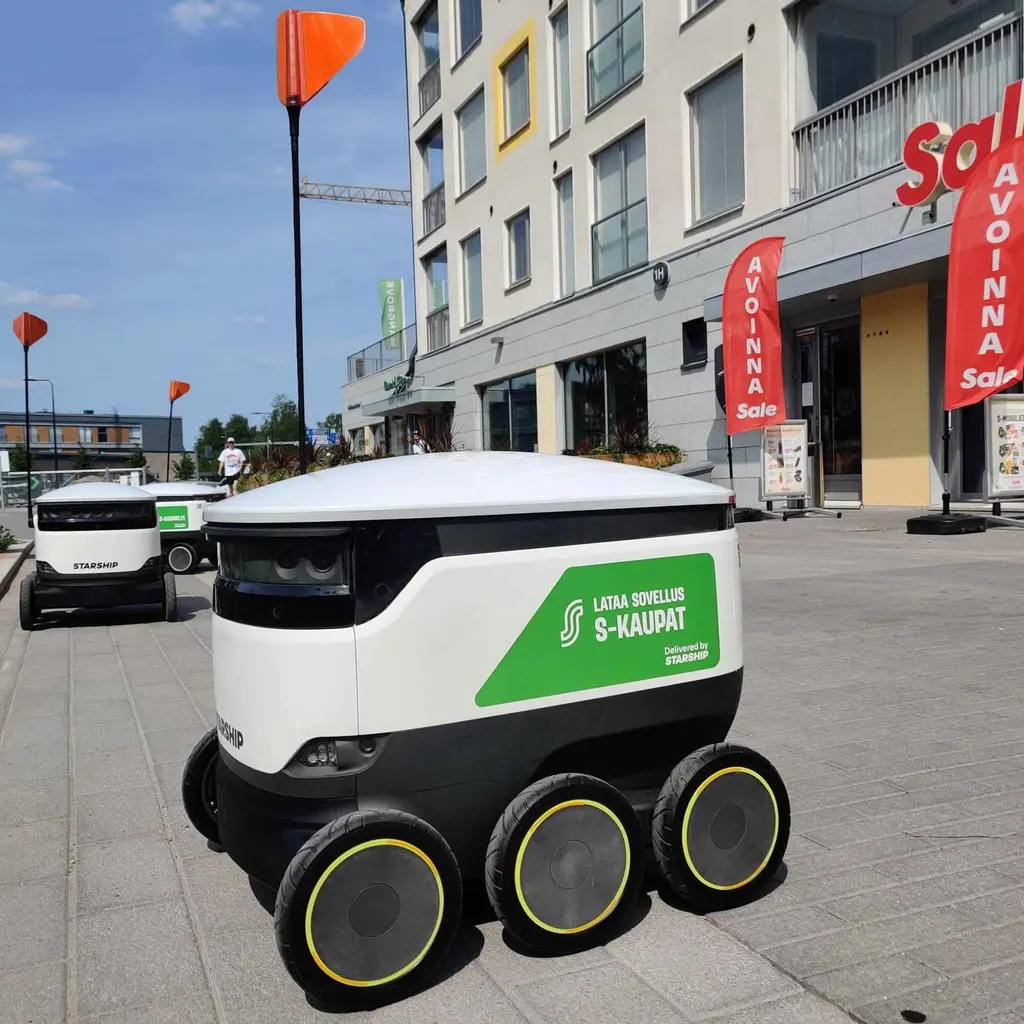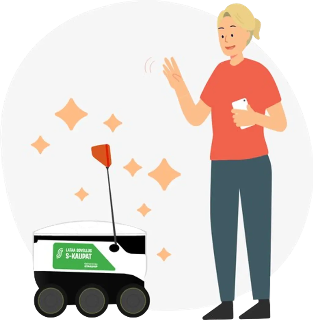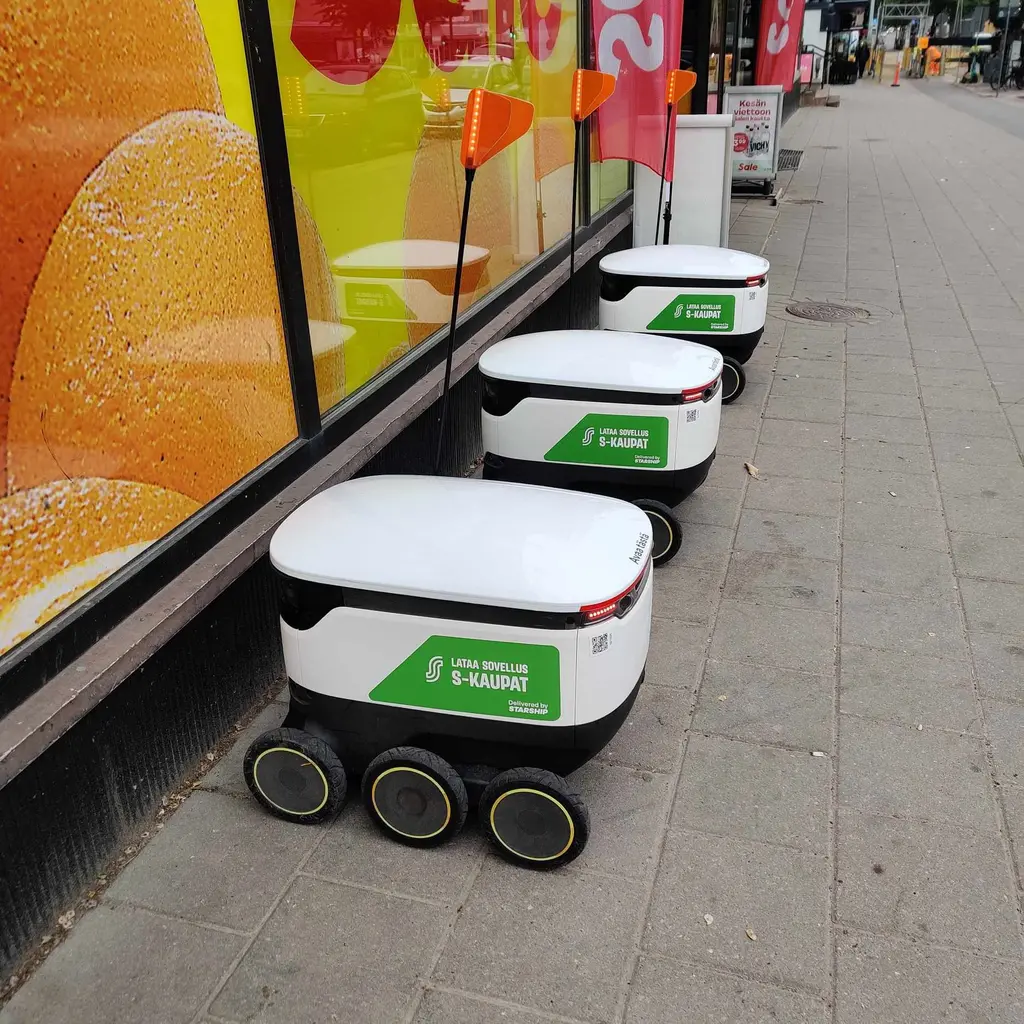 Kuljetuksen hinta on 2,90 €.Robottien toimitusalue on muutaman kilometrin säde myymälästä. S-kaupat-sovelluksesta näet, kuljettaako robotti ostokset paikkaan missä olet.Robokuljetukset ovat paikallispäästöttömiä.Robotti painaa noin 36 kiloa ja voi kuljettaa kerralla 2 ruokakassillista tai 9 kilogramman painosta ostoksia.Sähköllä toimiva päästötön robotti tarkkailee ympäristöään 12 kameran, ultraäänisensoreiden ja tutkien avulla. Se hyödyntää tietokonenäköä ja teknologiaa, joka tunnistaa eri esteet. Robotti pysähtyy nopeasti esteen havaittuaan. Tekoälyn avulla se oppii koko ajan lisää ympäristöstään.Robotit ovat kulkeneet yli 13 miljoonaa kilometriä ja suorittaneet yli 6 miljoonaa autonomista toimitusta eri puolilla maailmaa.Robotit työskentelevät myös talvella. Jos huomaat hankeen jumiutuneen robotin, saa sitä mennä auttamaan.